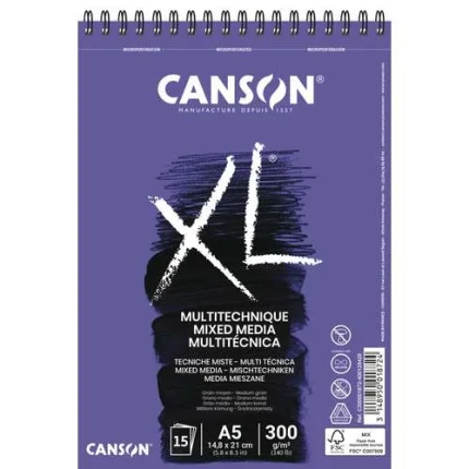 Bloc de 15 feuilles de papier dessin XL Multitechnique 300g A5 – Canson