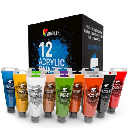 Zenacolor – Kit de 12 Peintures Acryliques – 12 Tubes de 120ml, 12 Couleurs, Peintures pour Toiles, Bois, Loisirs Créatifs, pour Adultes et Enfants.