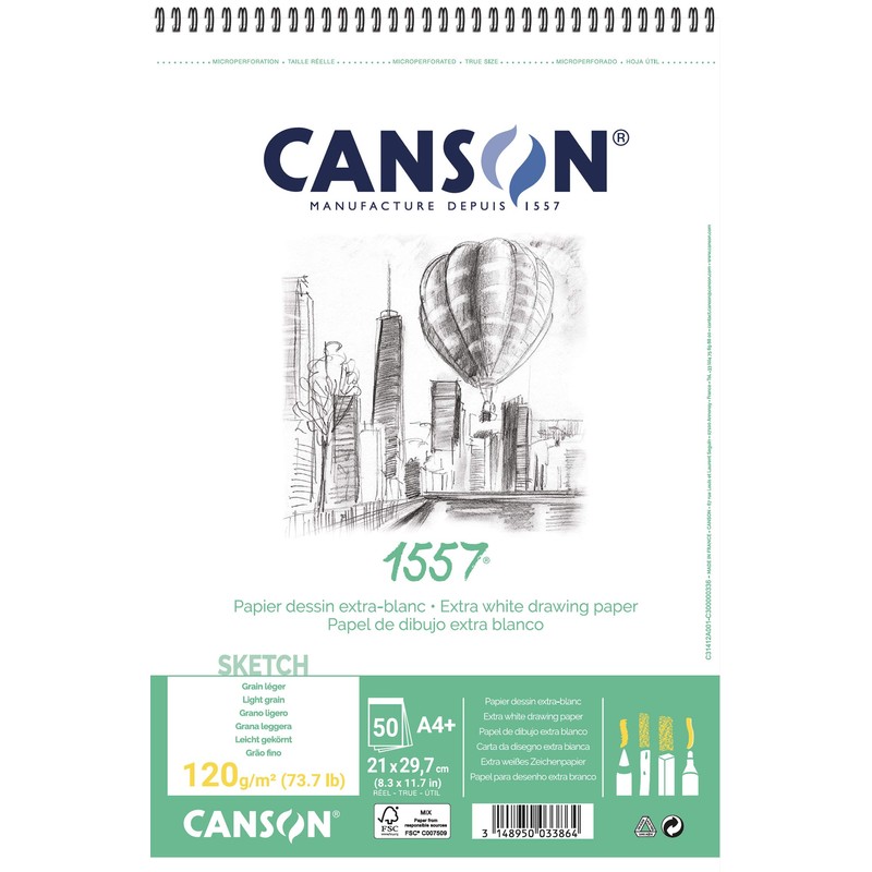 Bloc de 30 feuilles de papier dessin 1557 120g A3 – Canson