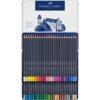 Les crayons de couleur Goldfaber permettent une application de la couleur souple et intense et sauront vous convaincre par leurs couleurs extrêment brillantes. Des matières premières de grande qualité ainsi qu’un procédé de fabrication innovant garantiront une résistance à la lumière optimale et une excellente résistance à la lumière. Les esquisses, les hachures ou encore les dégardés de couleurs….toutes ces techniques peuvent être utilisées sans efforts.