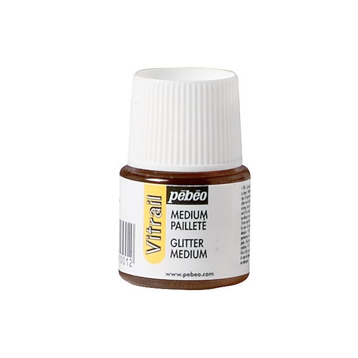 Médium pailleté Vitrail de Pébéo qui permet de changer l’effet de la peinture Vitrail. Ce médium permet ainsi de fludifier vos couleurs Vitrail et de leur donner un bel aspect scintillant. Mélangez quelques gouttes directement avec la peinture Vitrail ou appliquez directement le médium pailleté sur votre vitrail. Utilisable pour les techniques Mix-Média.