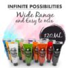 ✅ LA QUANTITÉ ACCOMPAGNE LA QUALITÉ – Grâce à notre kit peinture acrylique de tubes de 120ml, vous pourrez démarrer vos peintures l’esprit léger, sans craindre d’être rapidement à court de peinture et de ne pas pouvoir terminer vos oeuvres d’art.