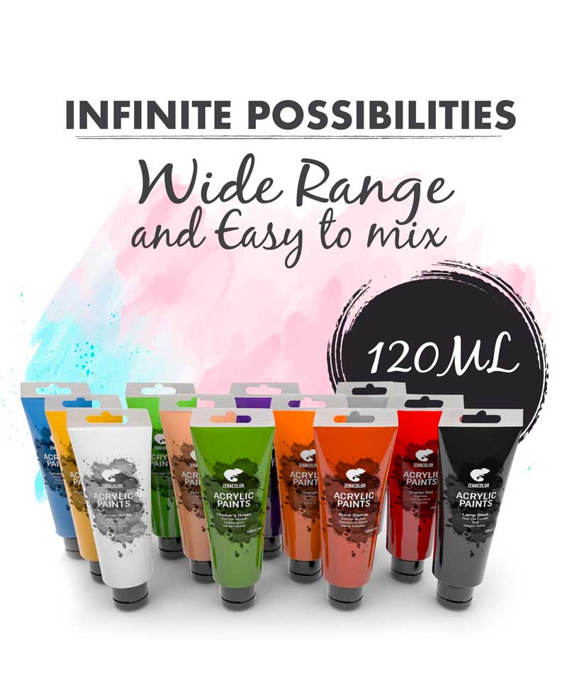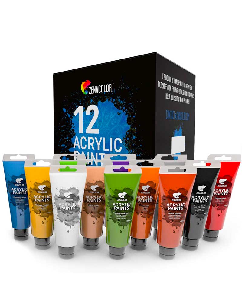 Zenacolor – Kit de 12 Peintures Acryliques – 12 Tubes de 120ml, 12 Couleurs, Peintures pour Toiles, Bois, Loisirs Créatifs, pour Adultes et Enfants.